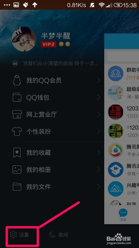 4、進(jìn)入QQ設(shè)置菜單:在設(shè)置頁面,你會看到各種選項。