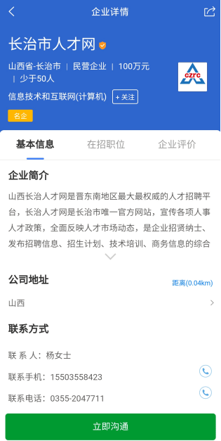 3、精準(zhǔn)匹配推薦:根據(jù)求職者的個(gè)人信息和職業(yè)規(guī)劃,長(zhǎng)治人才網(wǎng)為企業(yè)推薦合適的候選人,提高招聘效率。